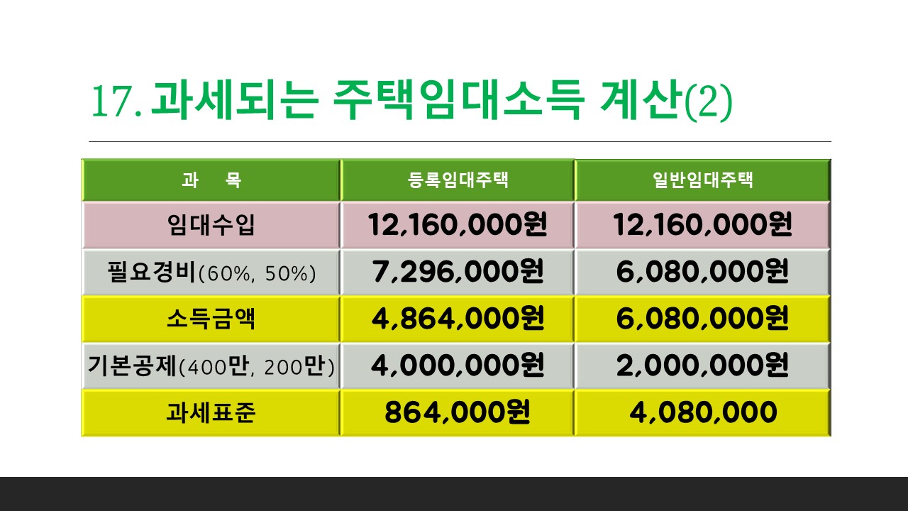 그런데 다들 아시겠지만 연간 2천만원도 안되는 월세소득에 대하여 과세한다고 해서 걱정하실 필요는 없습니다.