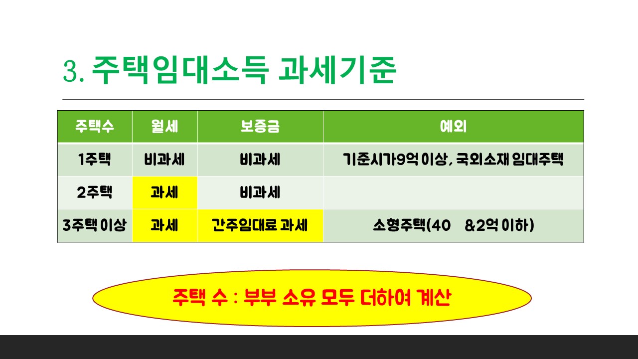 2019년도분 부터 주택임대소득에 대하여 전면적으로 과세하는 것은 알고 계시죠!